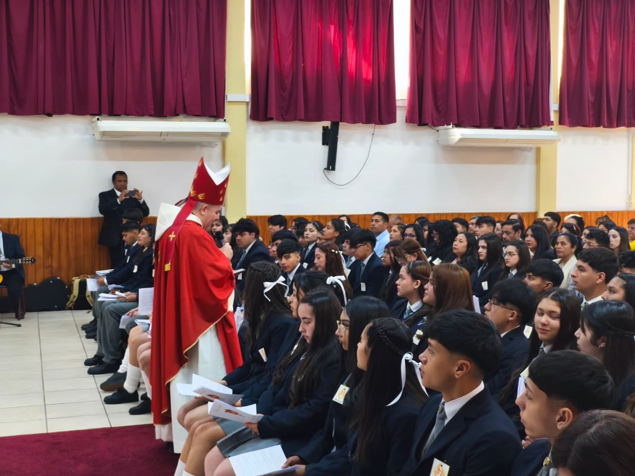 El pasado sábado 11 de octubre, el salón de actos del Liceo Santa Marta de Vallenar se transformó en un templo de encuentro con Dios. Bajo la luz suave de la mañana, setenta y un jóvenes de Cuarto Medio A y B vivieron un paso significativos de su vida cristiana: recibieron el Sacramento de la Confirmación, renovando su fe y comprometiéndose con el amor que transforma.