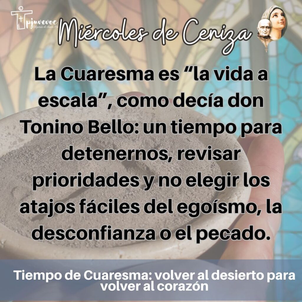 La Cuaresma es memoria de los 40 días de Jesús en el desierto, tiempo de prueba y fidelidad. Hoy, nuestros desiertos no siempre son de arena y soledad; pueden ser el cansancio, la incertidumbre, las dificultades cotidianas o la aridez interior. Este tiempo nos enseña a evitar los atajos fáciles y a aprender a discernir lo esencial, poniendo nuestras prioridades a la luz del Evangelio.