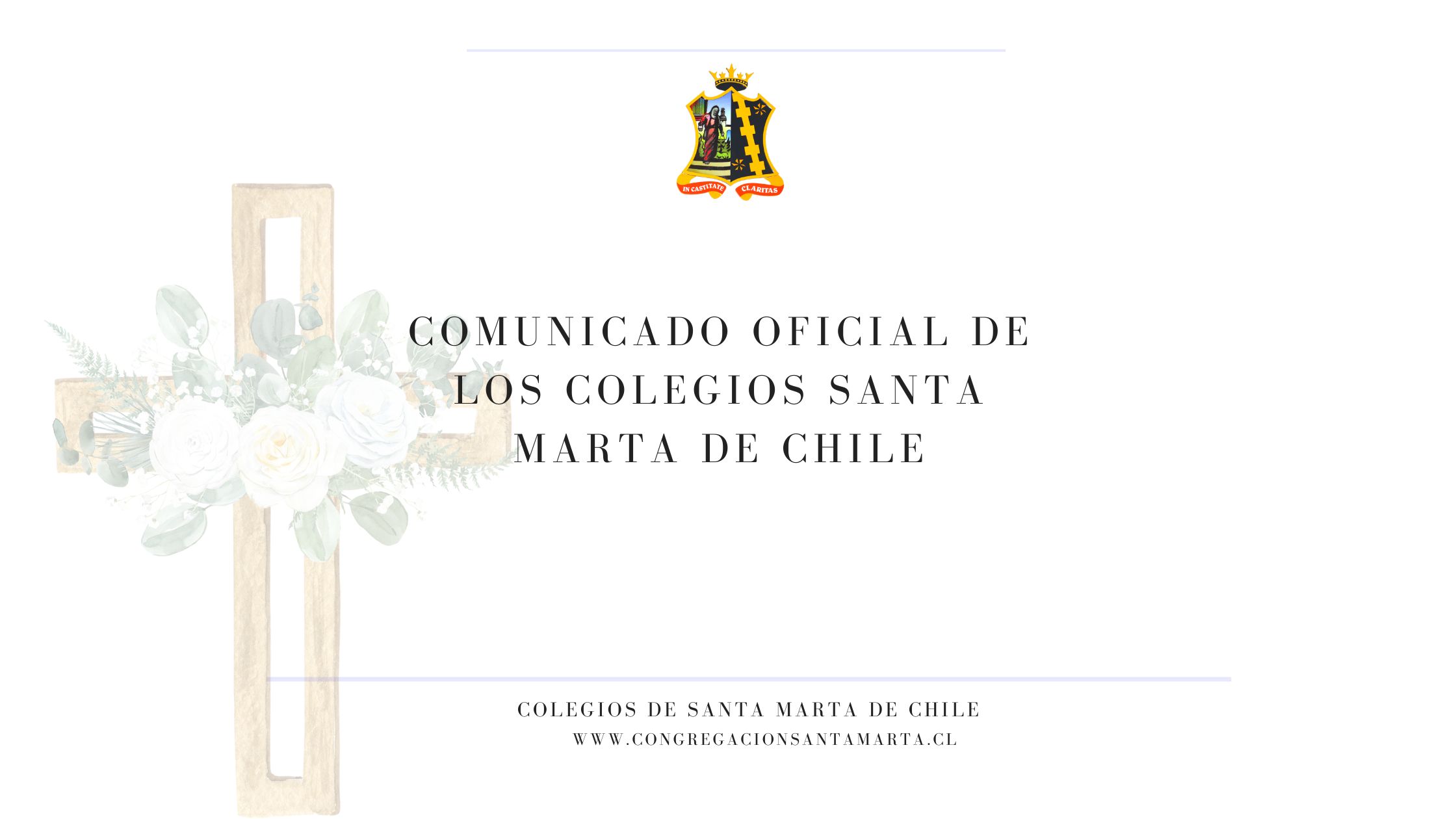 Los Colegios Santa Marta de Chile, pertenecientes a la Congregación de las Religiosas de Santa Marta, expresan su profundo pesar y solidaridad con la comunidad educativa del Instituto Obispo Silva Lazaeta de Calama por la dolorosa situación vivida el viernes 27 de marzo.
